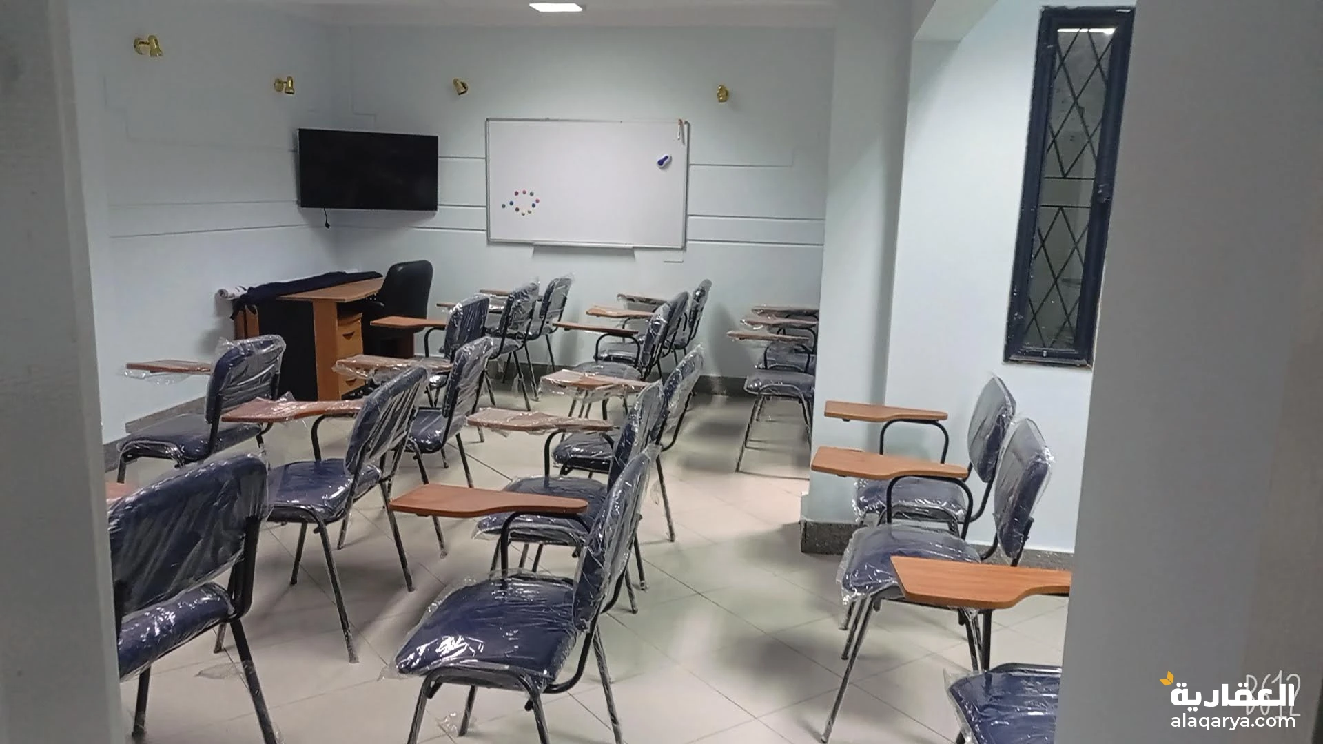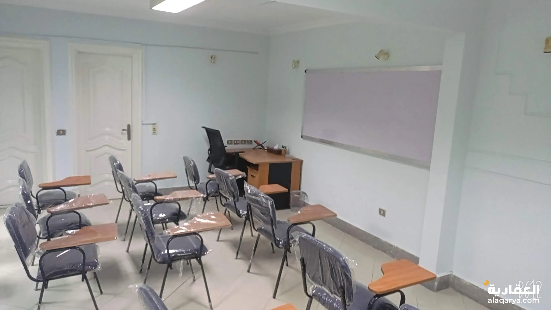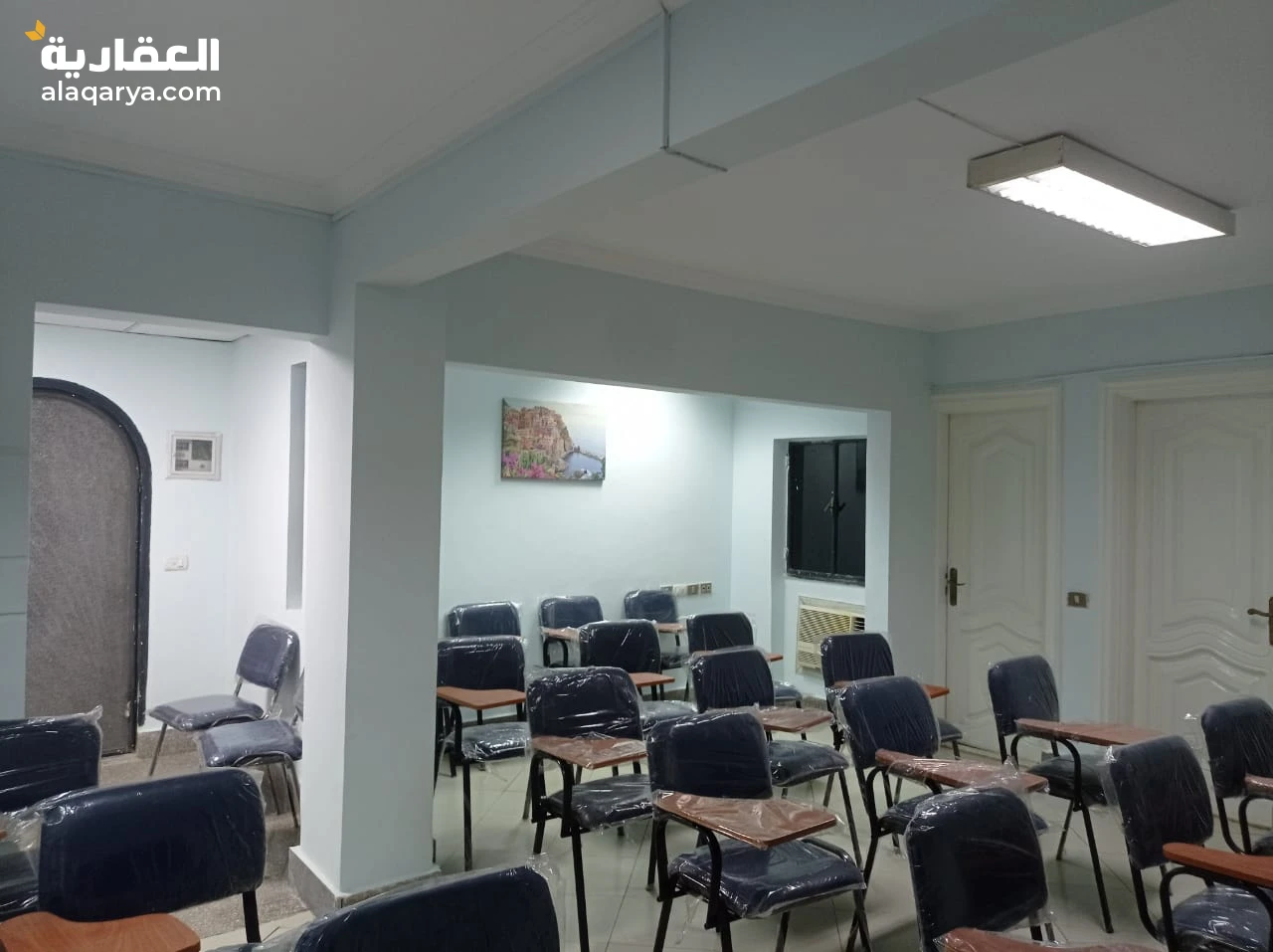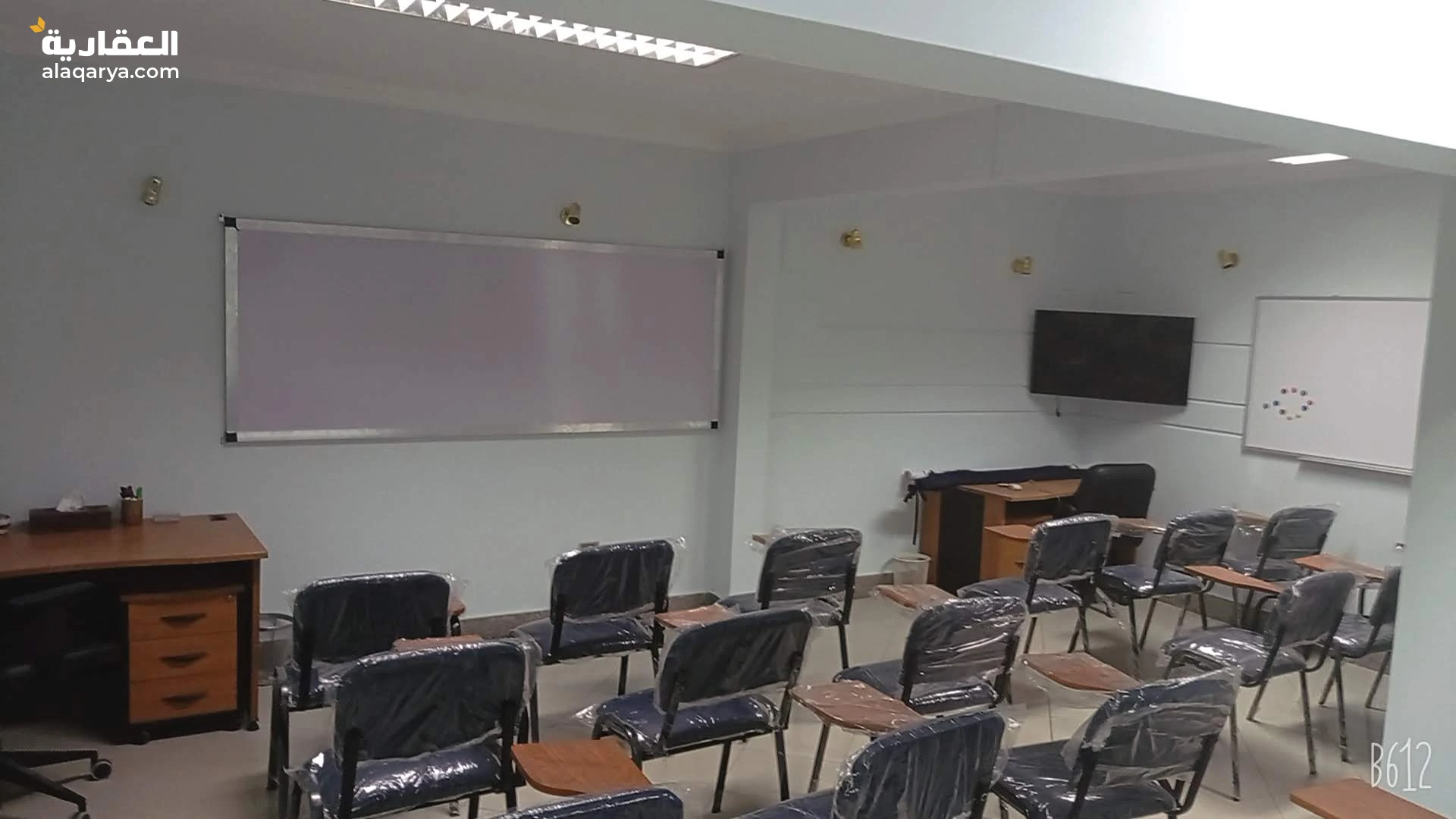قاعة محاضرات سعة 25 كرسي محاضرات تنفع لكافة اغراض التدريب و التعليم و مقابلات العمل و الاجتماعات مجهزة بشاشة عرض و 2 وايت بورد و كوفى كورنر و استقبال و مكاتب