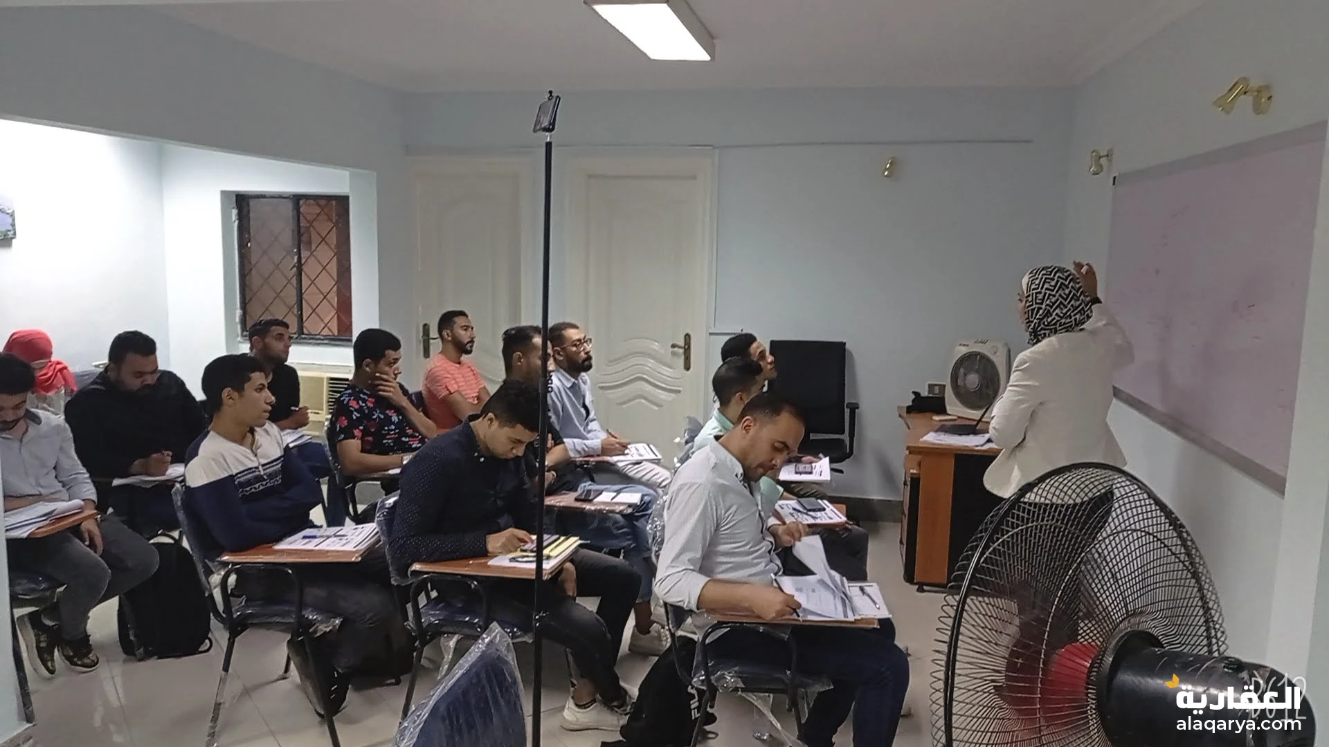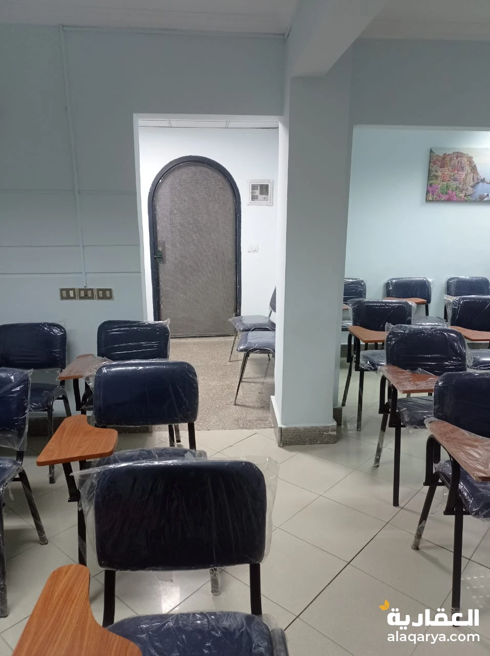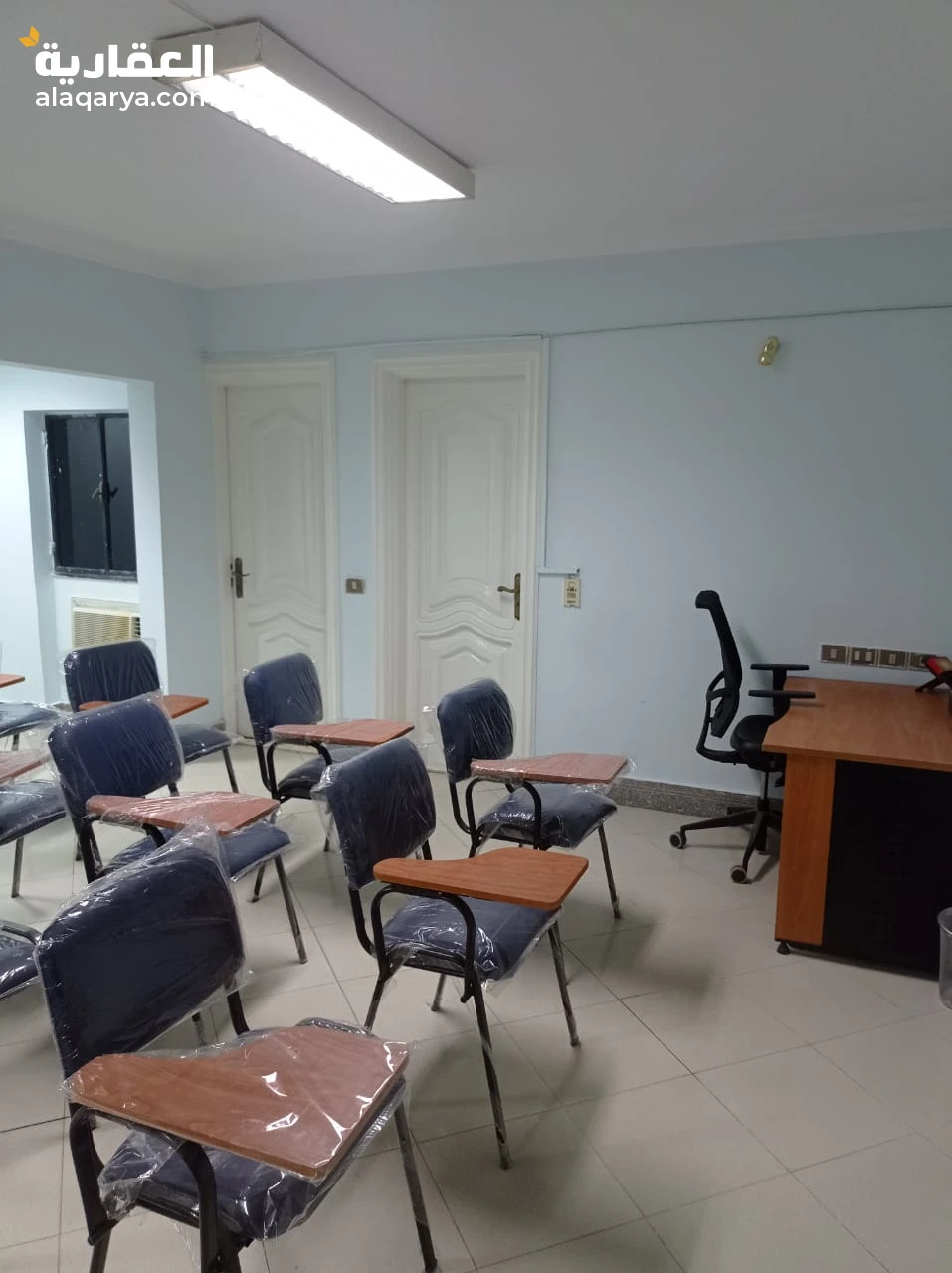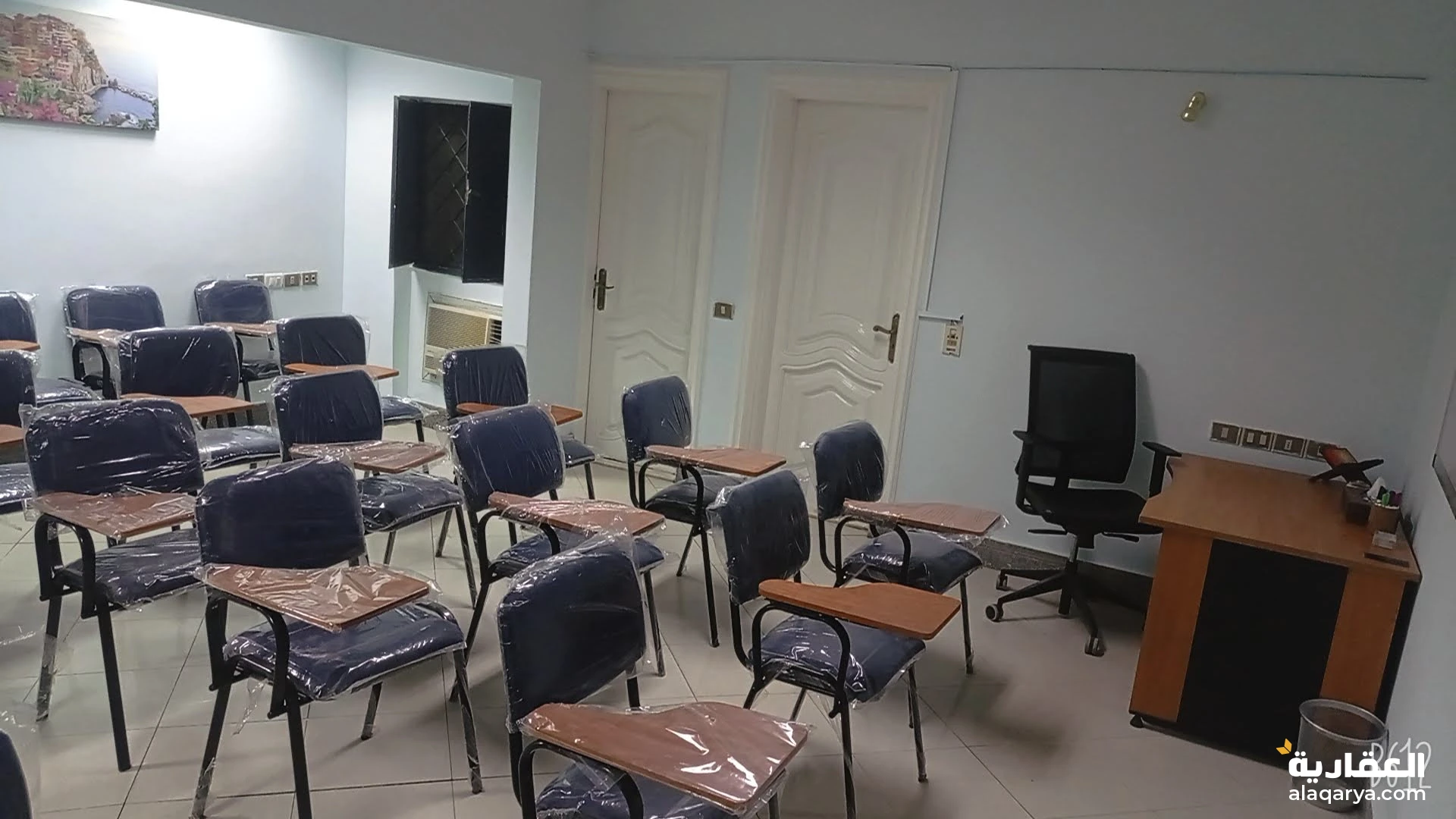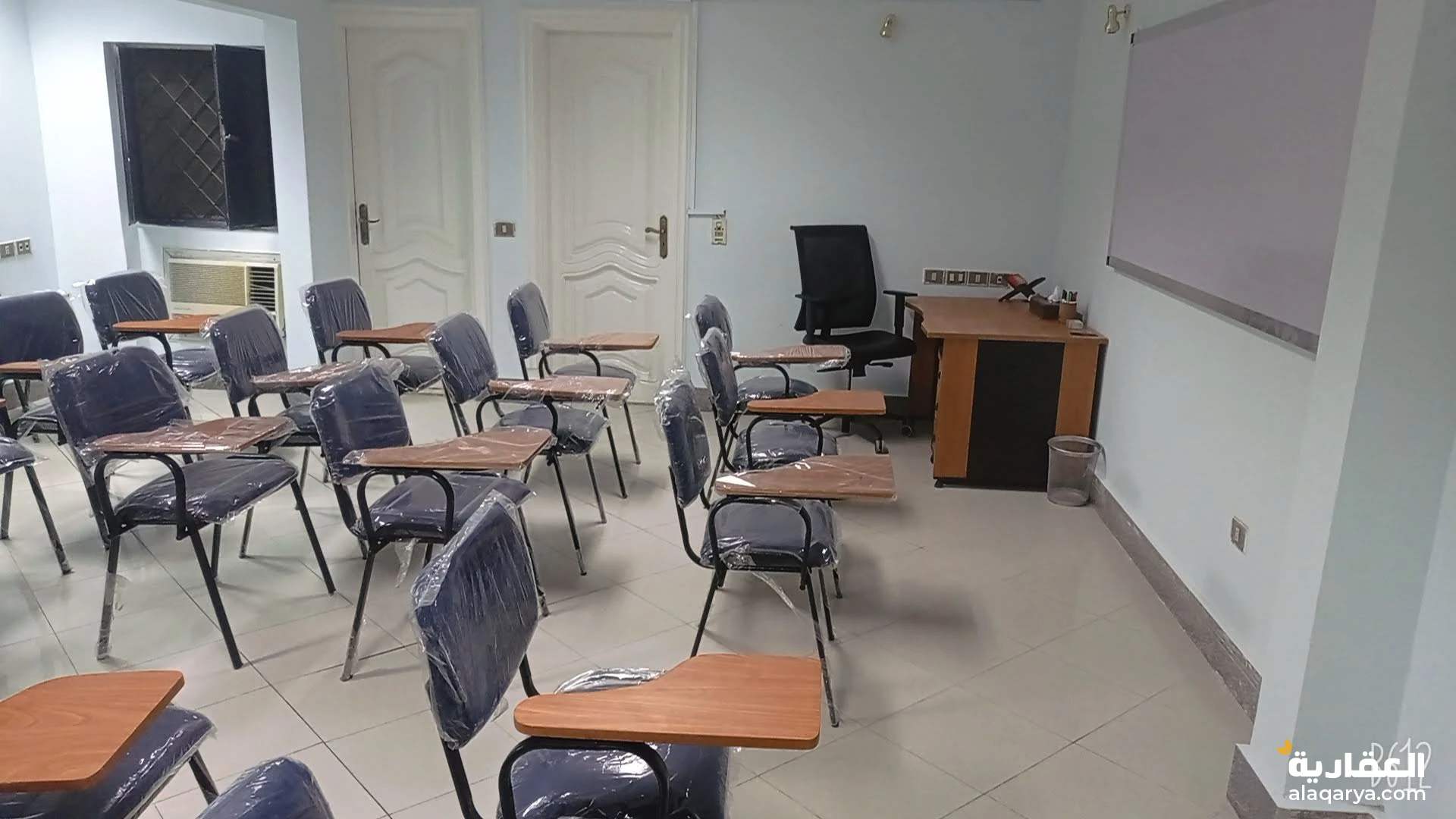 قاعة محاضرات سعة 25 كرسي محاضرات تنفع لكافة اغراض التدريب و التعليم و مقابلات العمل و الاجتماعات مجهزة بشاشة عرض و 2 وايت بورد و كوفى كورنر و استقبال و مكاتب