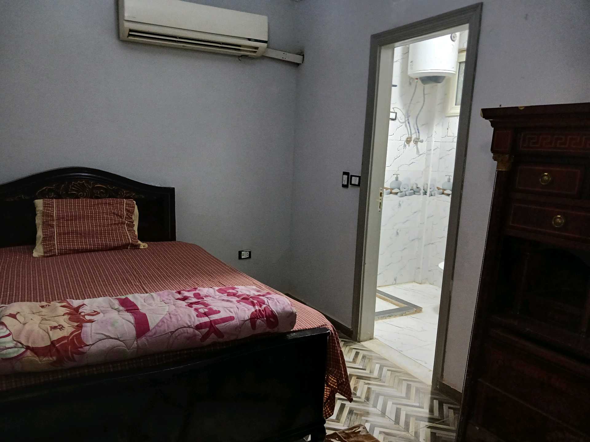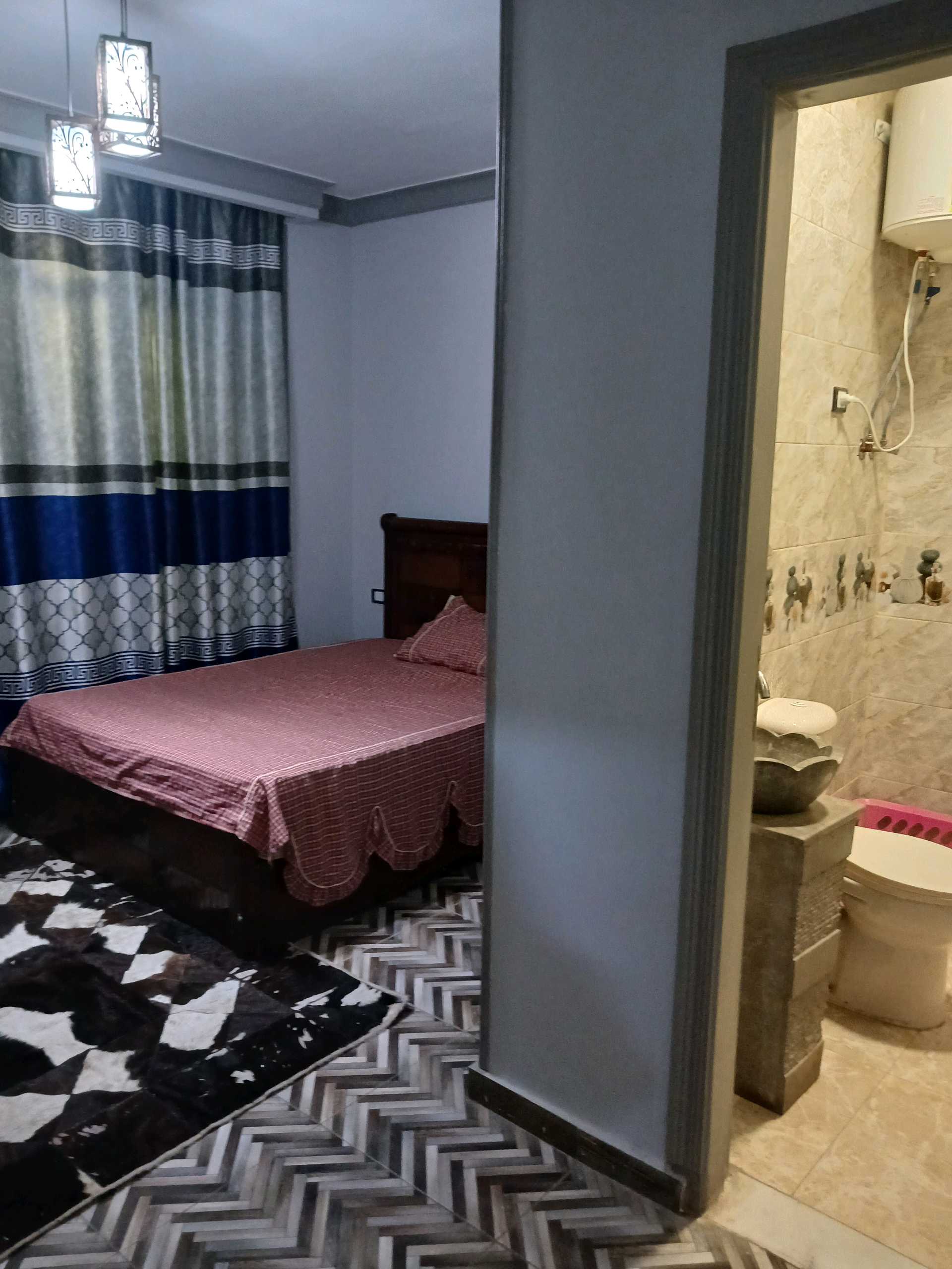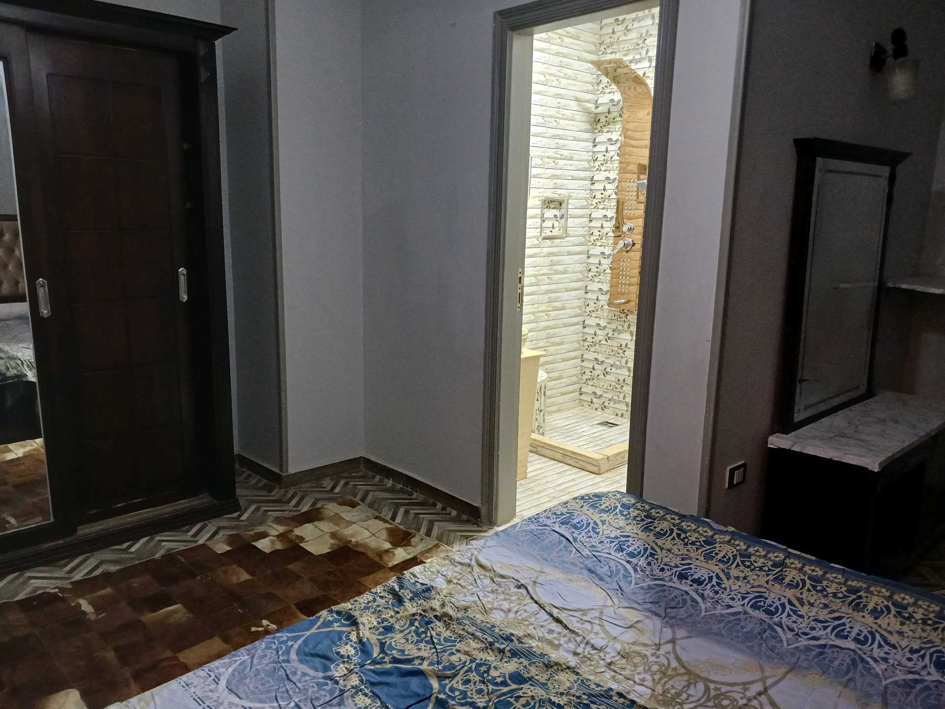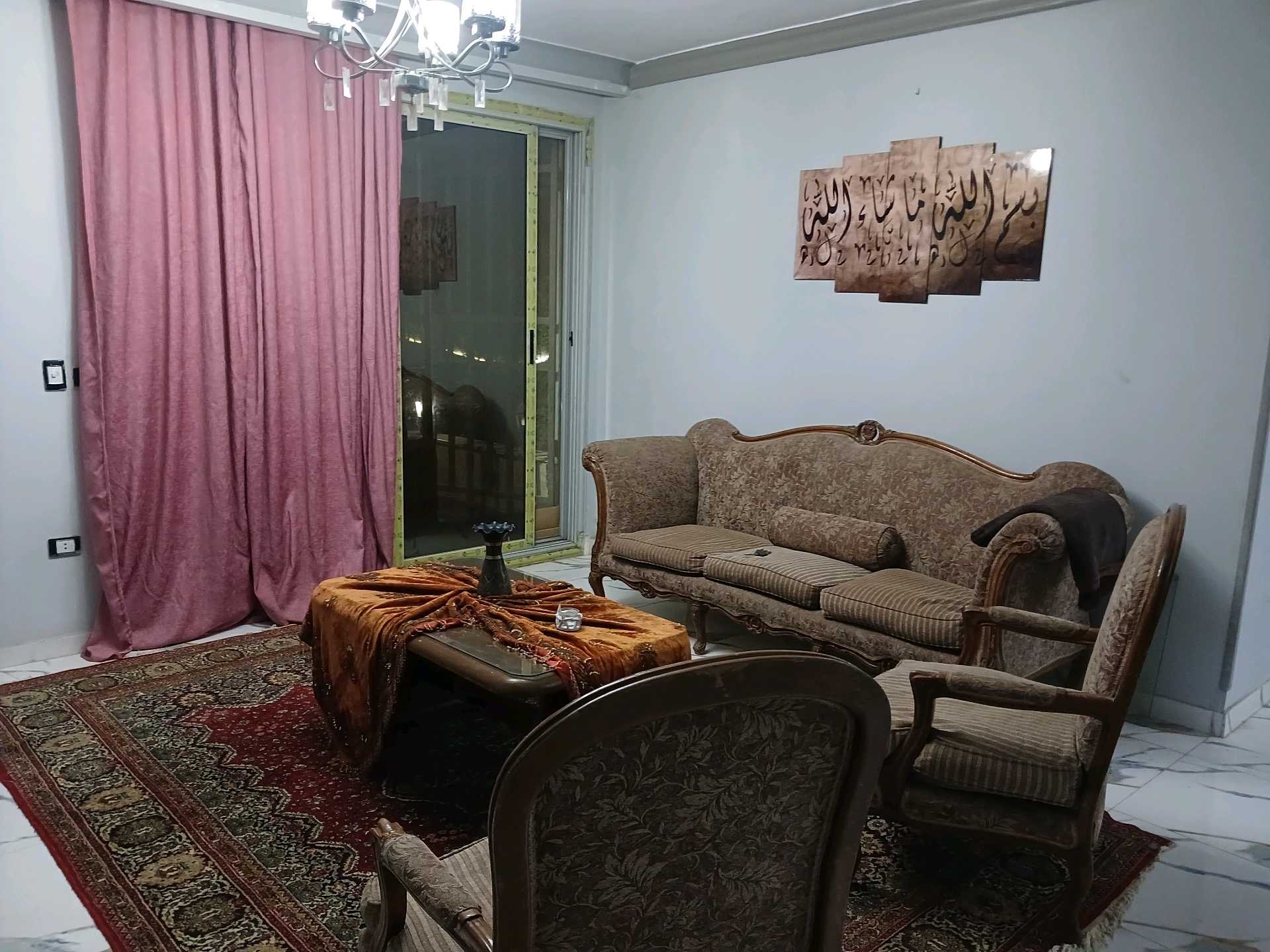شقه للايجار ارضى بجنينه مزروعه محاطه بسور حديد مساحه الجنينه ٧٠م الشقه ٣ غرف ماستر كل غرفه بحمام وحمام ضيوف وغرفه اطفال واوبن كيتشن وصاله وسفره مفروشه ومكيفه