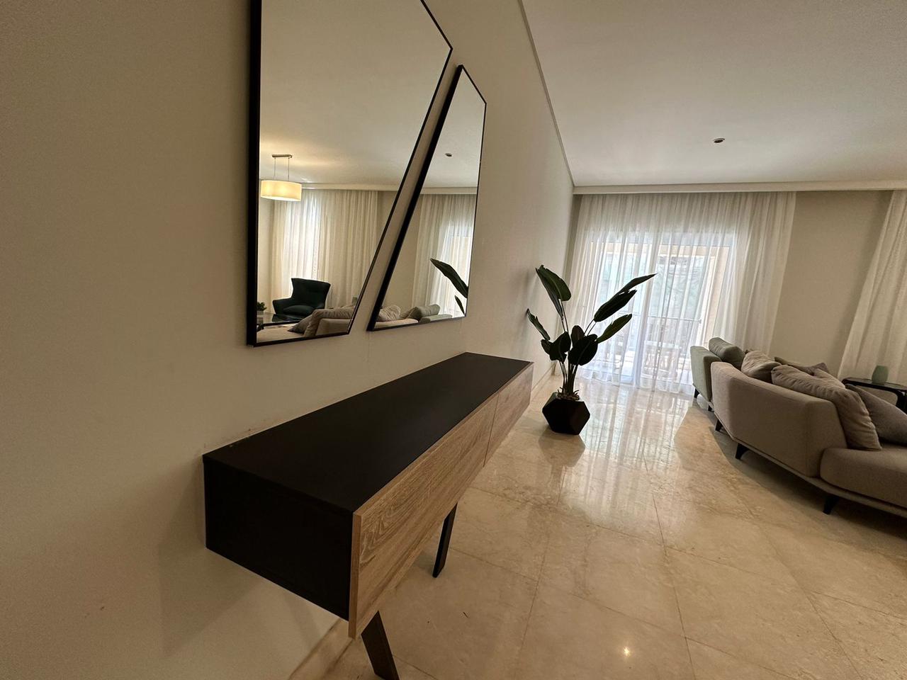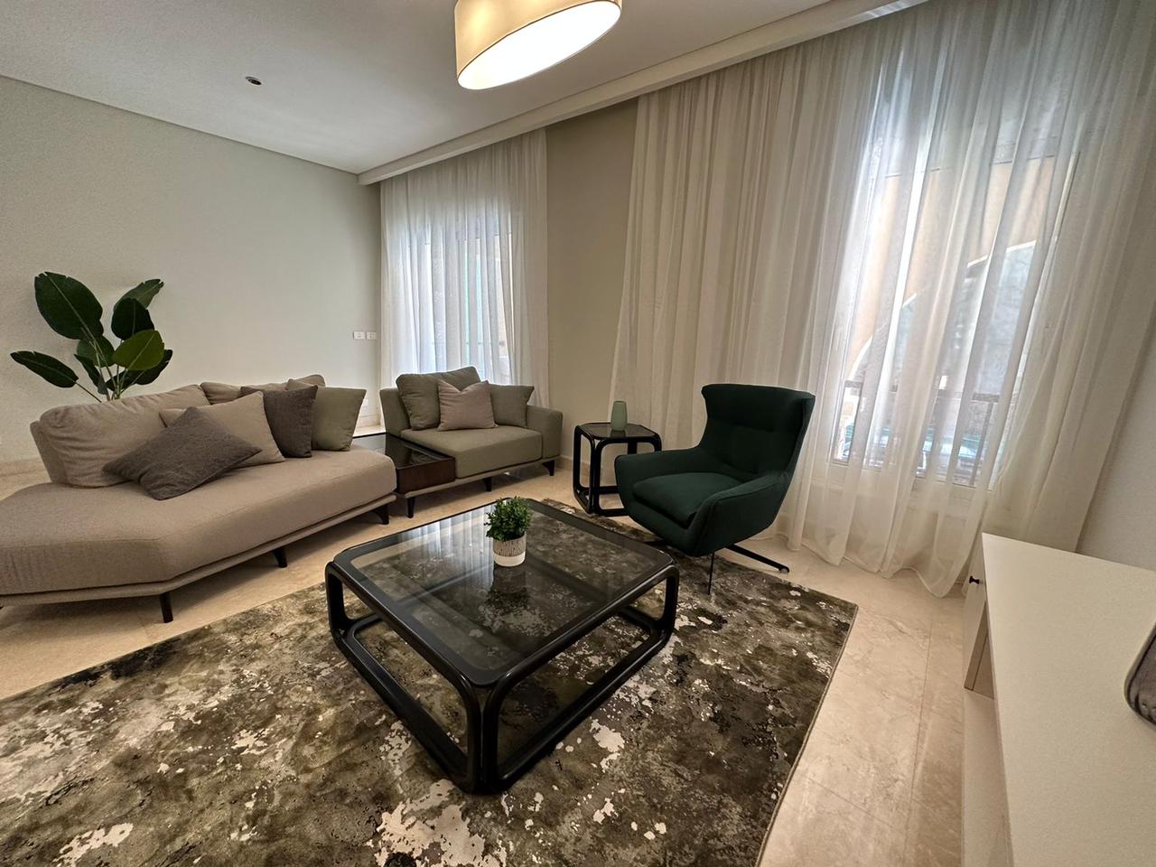شقة متشطبة بالكامل استلام فوري في المعادي 120 متر +26 متر جاردن مكونة من 3 غرف وحمامين ومطبخ وريسبشن