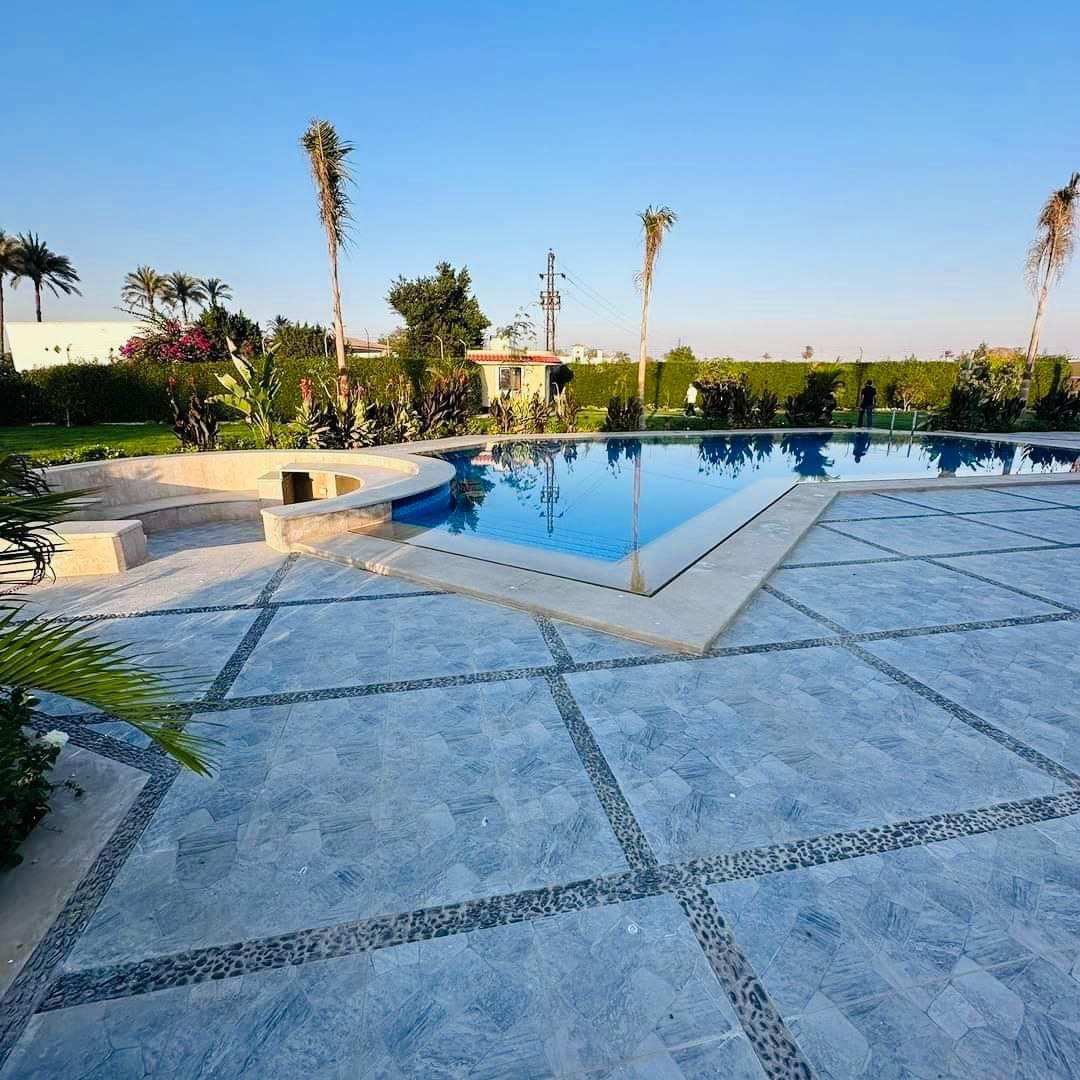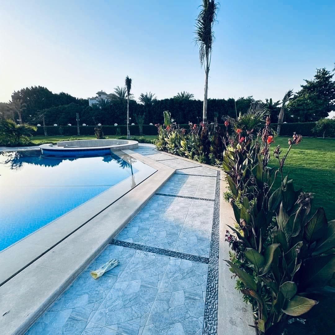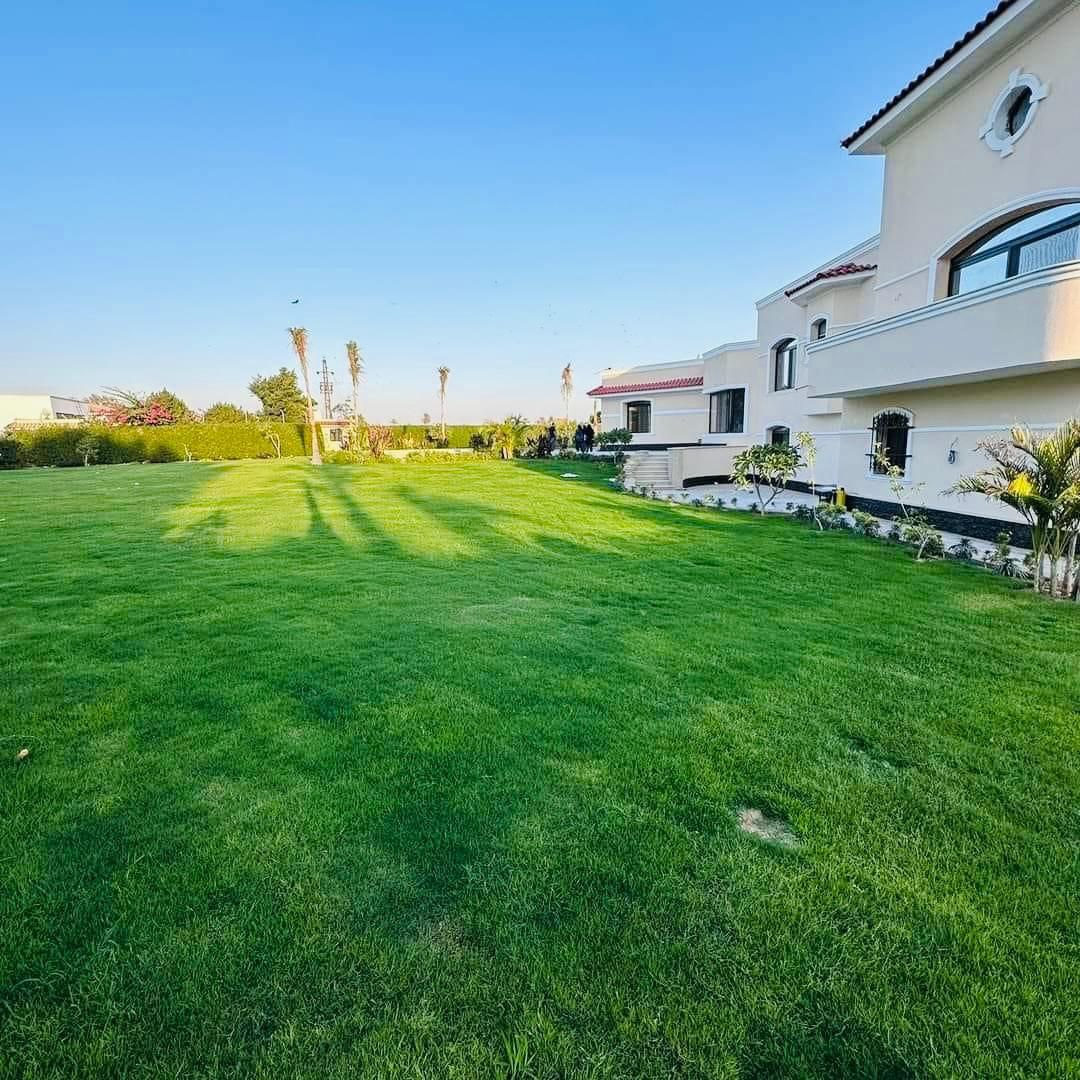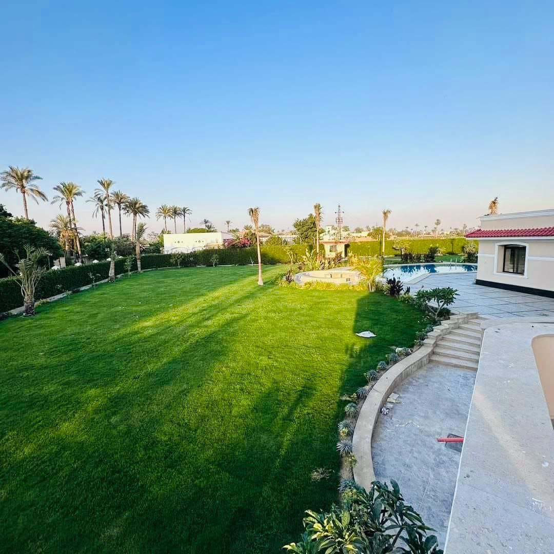 فيلا ب المنصورية تصميم راقي .. داخل كومباوند عباره عن فلل فقط .. مساحه إجماليه ٤٢٠٠ م .. تشمل ٧٥٠ م مباني و الباقي لاند سكيب و تراسات .. عباره عن :: مبنى رئيسي مكون من ريسبشن أربع قطع و مطبخ كبير و غرفة ليفينج و ٤ غرف نوم منهم اتنين ماستر بحمامات خاصه و غرفة ناني بحمام خاص .. مبنى فرعي عباره عن ريسيبشن قطعتين و مطبخ صغير و ٤ غرف نوم منهم غرفة نوم ماستر بالحمام مع حمام إضافي لباقي الغرف .. مبنى خاص بالحارس و الجنايني عباره عن غرفة نوم و حمام .. مبنى خاص لخدمة حمام السباحه عباره عن ٢ حمام و غرفة تغيير ملابس .. جميع التشطيبات راقيه سوبر لوكس و بأجود الخامات المستورده .. ساوند سيستم و سيستم كاميرات مراقبه و انتركم خارجي .. حمام سباحه كبير بالاضاءه الليليه و مجهز للتدفئة مع بار كبير لخدمة حمام السباحه .. ٢٥٠٠ متر من المساحة الخضراء مع أشجار الفاكهة و اجود أنواع نخيل البلح و نخيل الزينه .. المطلوب ٣٢ مليون Code F208