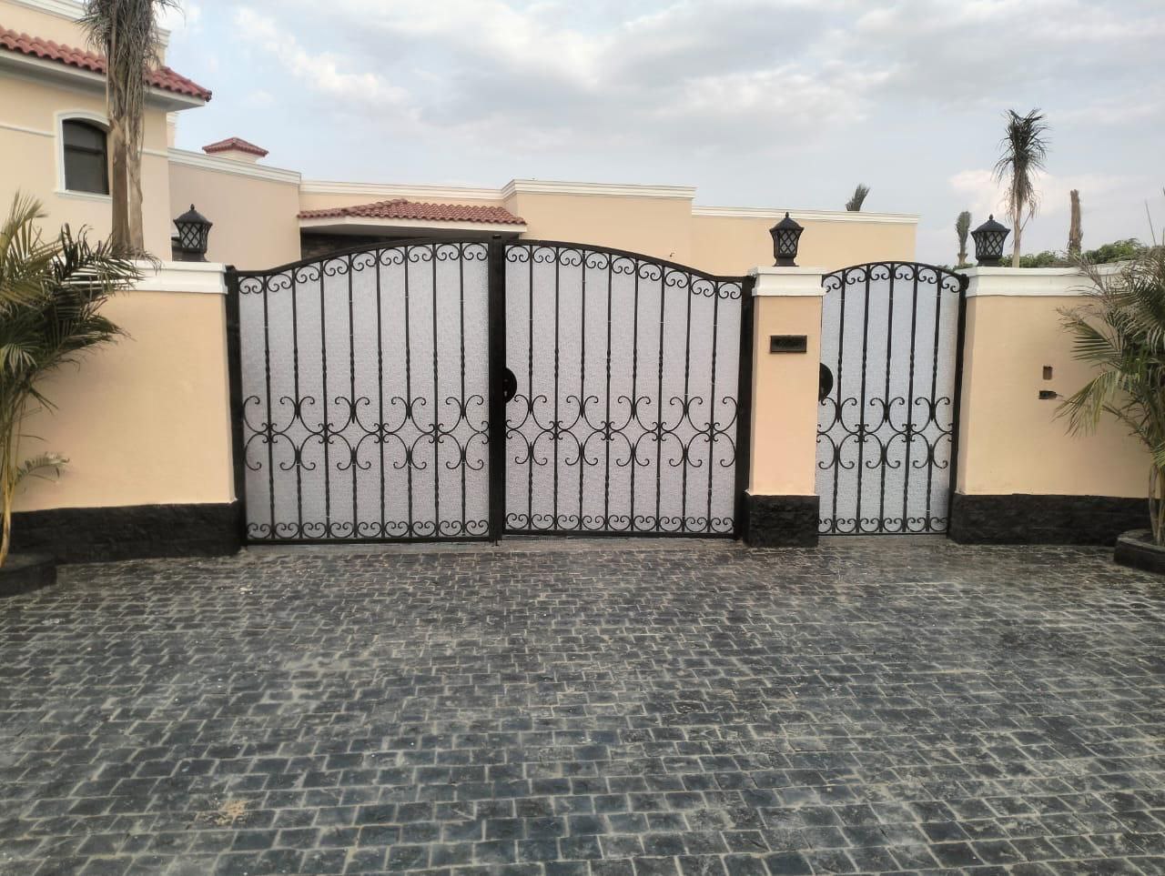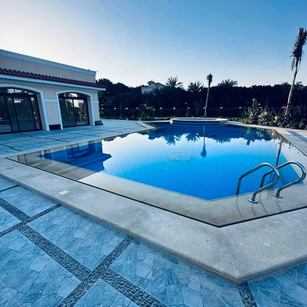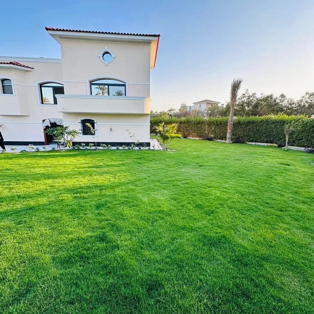 فيلا ب المنصورية تصميم راقي .. داخل كومباوند عباره عن فلل فقط .. مساحه إجماليه ٤٢٠٠ م .. تشمل ٧٥٠ م مباني و الباقي لاند سكيب و تراسات .. عباره عن :: مبنى رئيسي مكون من ريسبشن أربع قطع و مطبخ كبير و غرفة ليفينج و ٤ غرف نوم منهم اتنين ماستر بحمامات خاصه و غرفة ناني بحمام خاص .. مبنى فرعي عباره عن ريسيبشن قطعتين و مطبخ صغير و ٤ غرف نوم منهم غرفة نوم ماستر بالحمام مع حمام إضافي لباقي الغرف .. مبنى خاص بالحارس و الجنايني عباره عن غرفة نوم و حمام .. مبنى خاص لخدمة حمام السباحه عباره عن ٢ حمام و غرفة تغيير ملابس .. جميع التشطيبات راقيه سوبر لوكس و بأجود الخامات المستورده .. ساوند سيستم و سيستم كاميرات مراقبه و انتركم خارجي .. حمام سباحه كبير بالاضاءه الليليه و مجهز للتدفئة مع بار كبير لخدمة حمام السباحه .. ٢٥٠٠ متر من المساحة الخضراء مع أشجار الفاكهة و اجود أنواع نخيل البلح و نخيل الزينه .. المطلوب ٣٢ مليون Code F208