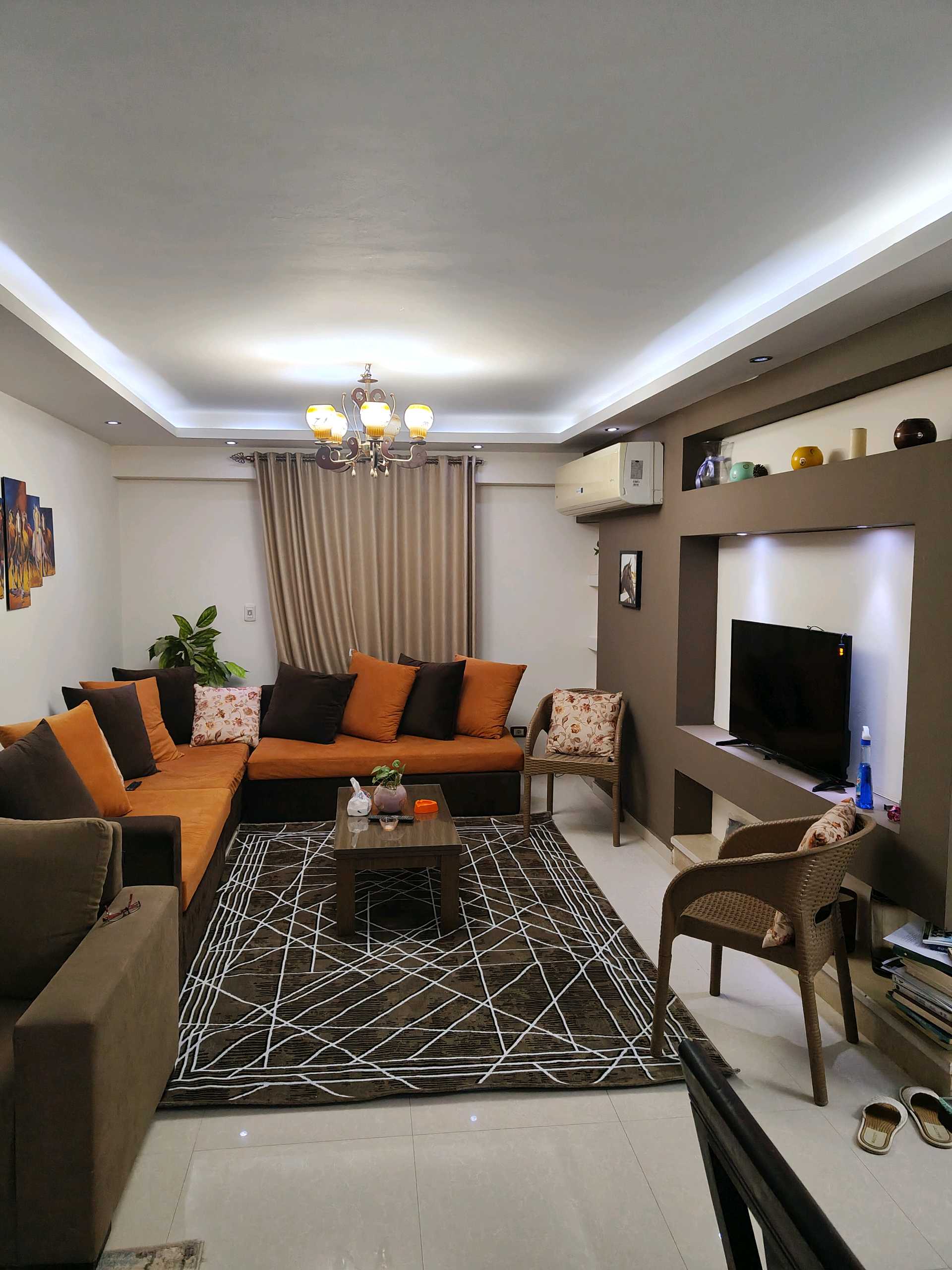 شقه مفروشه للايجار مدد طويله كمبوند بيفرلي هيلز/ الشيخ زايد ٢ غرفة نوم / ريسبشن ٣قطع/ جميع الاجهزه/ مكيفه بالكامل الدور التالت اسانسير